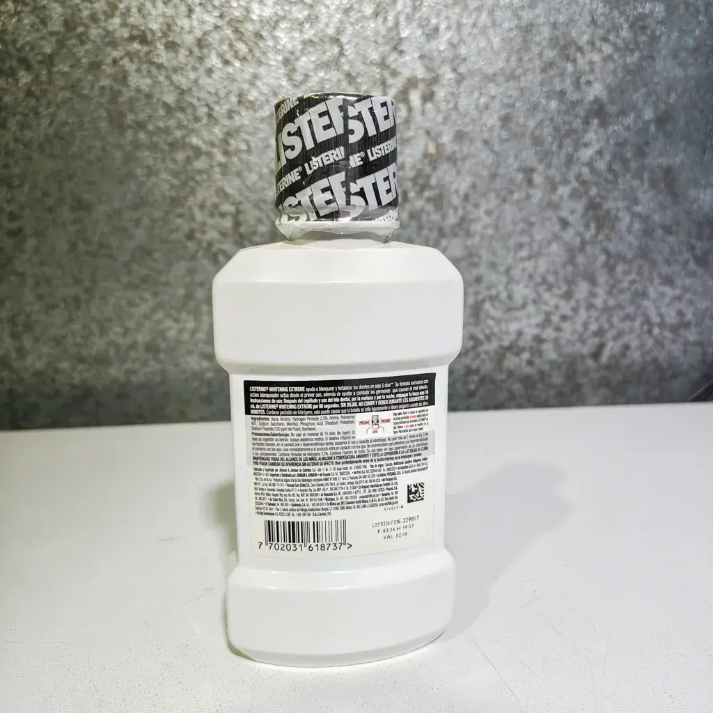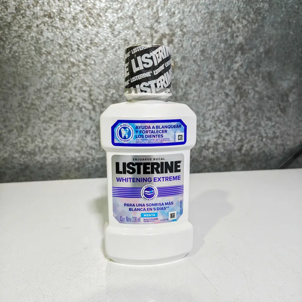 Listerine Whitening Extreme ayuda a blanquear y fortalecer los dientes. Elimina hasta el 99.9% de las bacterias que causan placa y mal aliento.