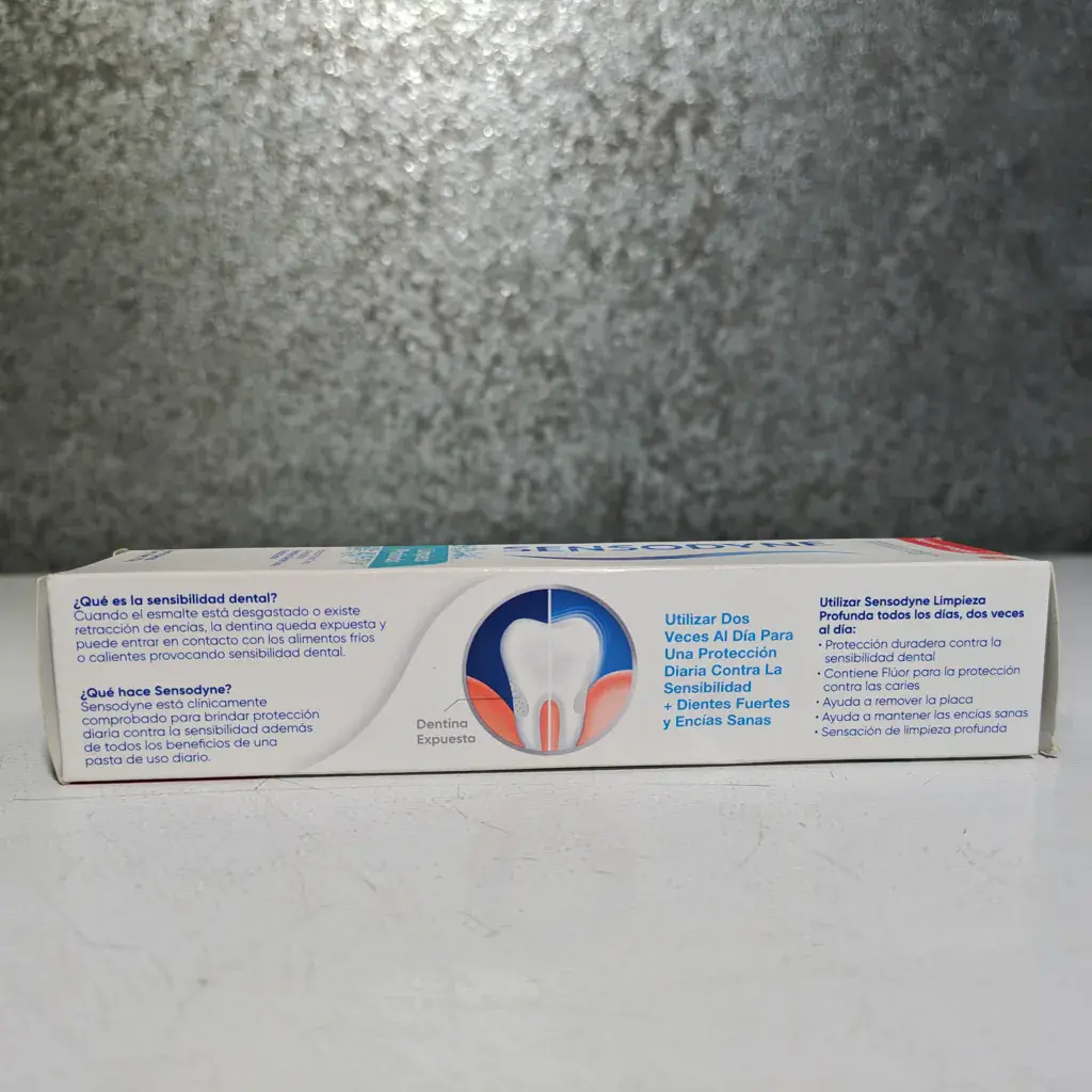 Crema dental Sensodyne limpieza profunda con flúor de uso diario, para proteger dientes sensibles, para una limpieza avanzada y frescura duradera. Contiene 113 gramos.