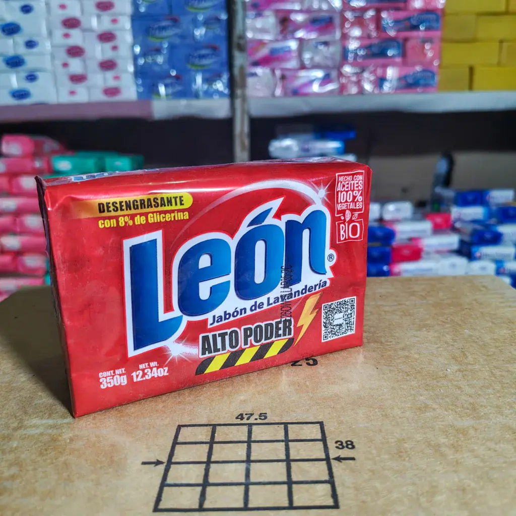El jabón de lavar León Alto Poder en su presentación de 350 gramos es la solución ideal para una limpieza profunda y eficaz.