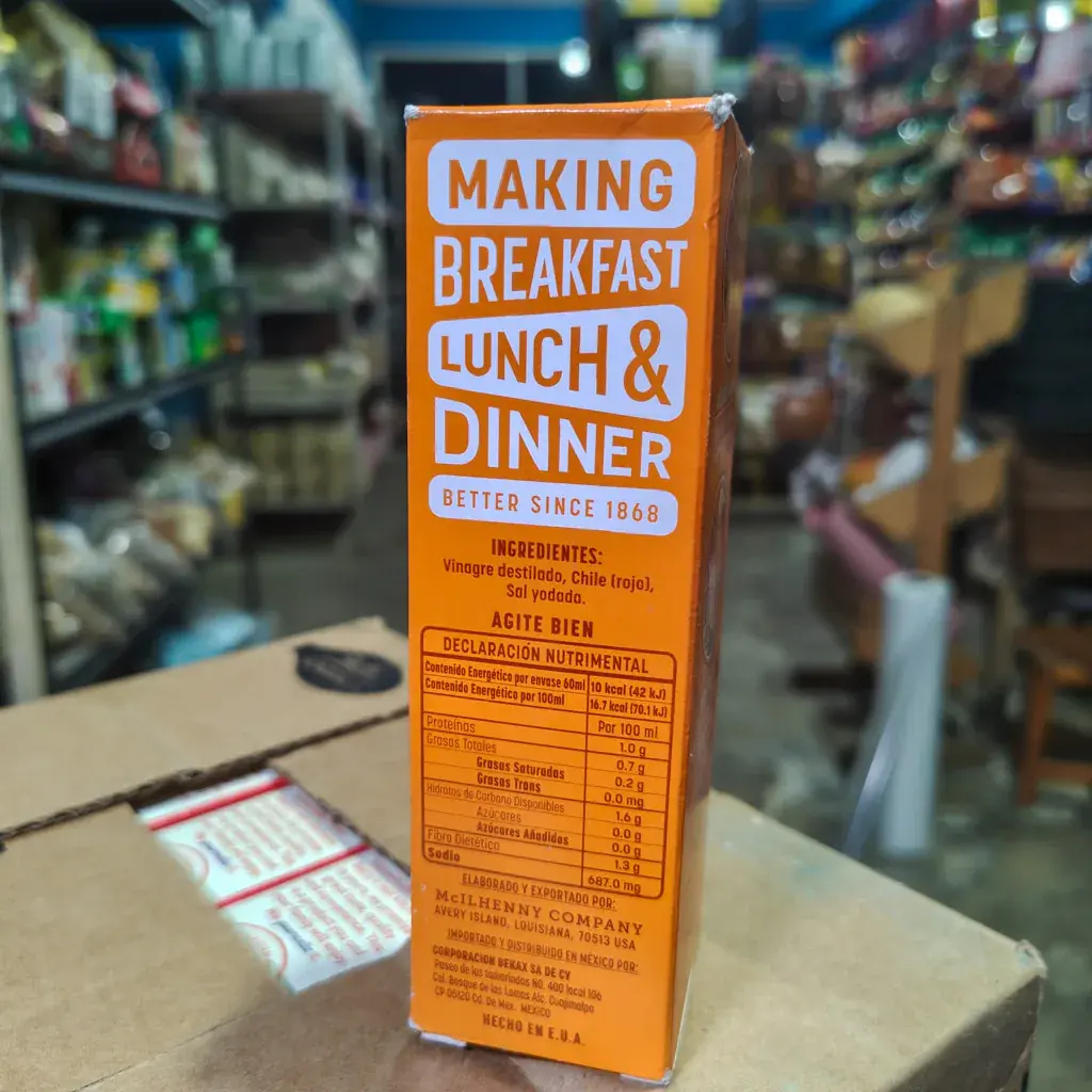 Elaborado específicamente para avivar el sabor de alimentos y bebidas. Sus tres ingredientes principales: Chile rojo, sal y vinagre son añejados por tres años en Avery Island, Louisiana; antes de embotellarse. La receta proviene de Edmund McIlhenny creada en 1868, y ha sido utilizada por la familia McIlhenny durante más de 150 años.