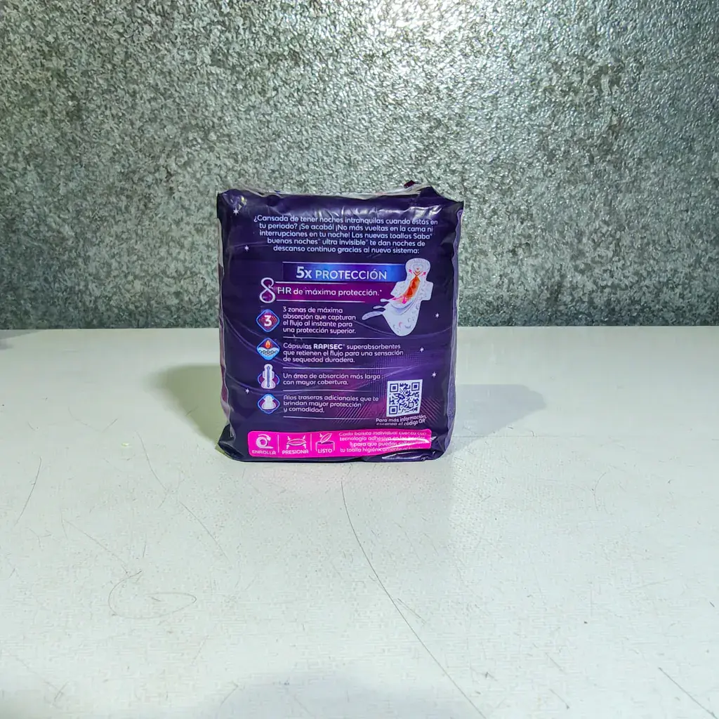 Descansa tranquila y protegida toda la noche con las toallas femeninas Saba Buenas Noches con Alas, diseñadas especialmente para ofrecer máxima absorción y comodidad mientras duermes. Su largo extendido y alas adherentes brindan un ajuste perfecto que ayuda a evitar derrames y deslizamientos, incluso con tus movimientos nocturnos.
